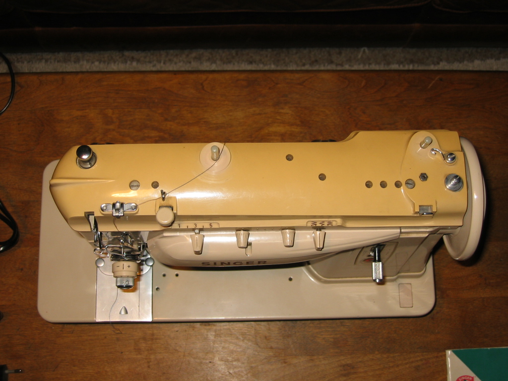 needleplates on the right (one for straight stitch, one for zig-zag)