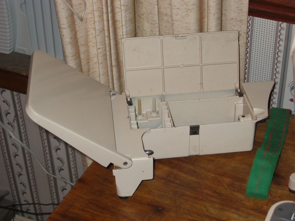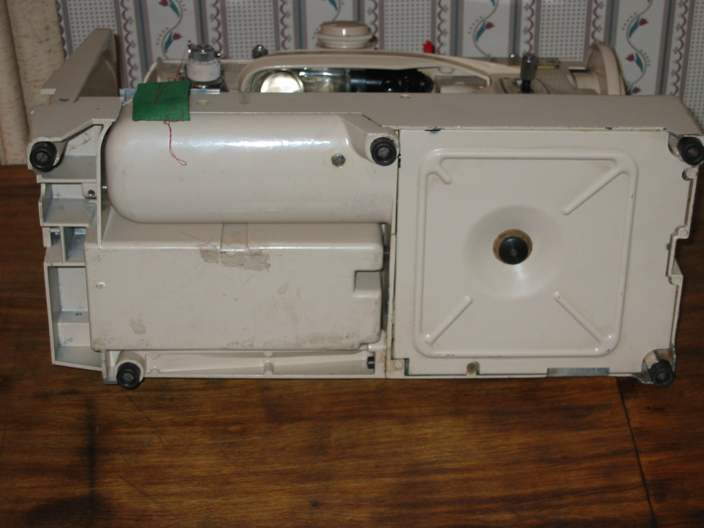 Also, note once again the bobbin winder on top of the machine, and, since this is a free arm, the lack of the
